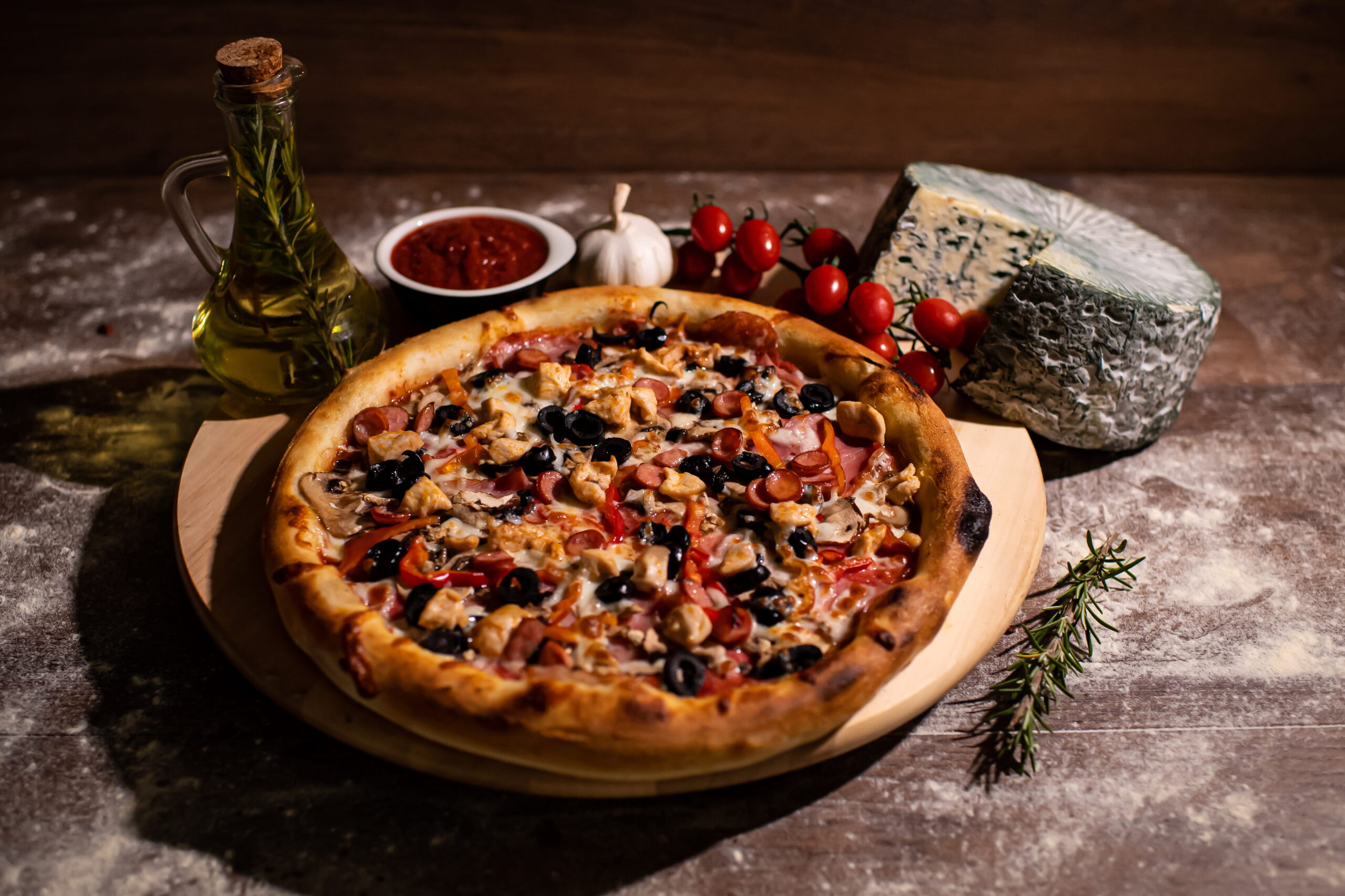 | Ingrediente | mozzarella, sos rosii, ciuperci, piept pui, ardei, porumb |