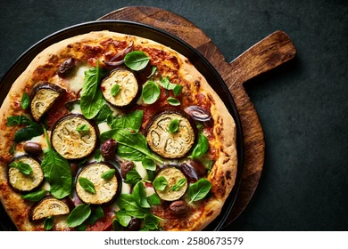 Pizza Vegetariana, livrare pizza in Dragasani. Ingrediente: sos rosii, vinete, ciuperci, dovlecel, ceapa, porumb, masline & ardei. Alege pizza Medie 550 gr sau Mica 350 gr.